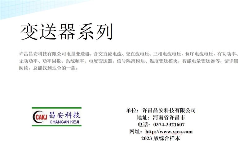 許昌昌安科技有限公司是專業(yè)生產(chǎn)智能電力測控設備及自動化裝置的高科技公司。產(chǎn)品包括電力系統(tǒng)微機中央信號報警裝置,電纜絕緣在線監(jiān)測裝置,相地保護裝置,電流、電壓監(jiān)視繼電器,失壓斷流計時儀,多功能電力儀表、電量變送器、溫濕度控制器、智能操控裝置等產(chǎn)品,形成了多系列為電力系統(tǒng)成套企業(yè)配套的產(chǎn)品及服務。 公司注重新技術新產(chǎn)品的開發(fā),同時全面貫徹ISO9001質量保證體系。 公司前身為許昌市儀器儀表研究所。多年以來,公司致力于測控儀器儀表的開發(fā)生產(chǎn),積累了豐富的為電力用戶服務的經(jīng)驗及產(chǎn)品,形成了一個充滿活力,積極進取的團隊。
